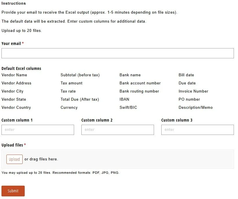 Turn many invoices into one Excel doc, one row for each invoice